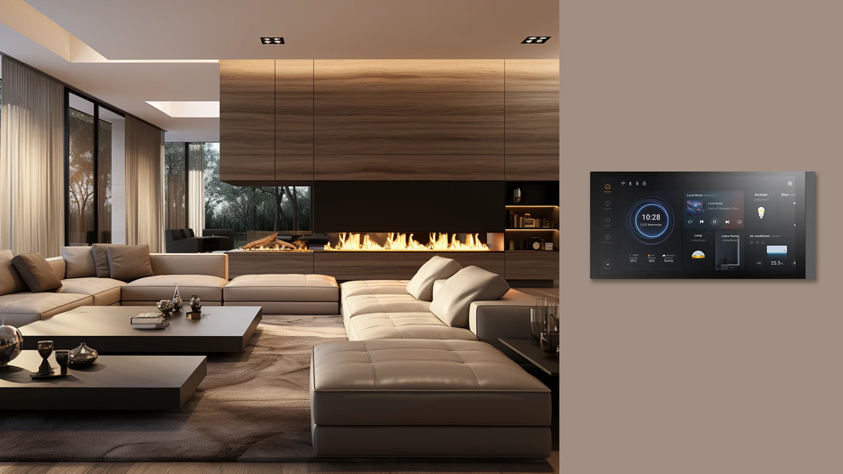 Полный функционал для управления освещением, климатом, шторами и другими системами, в том числе по сценариям.