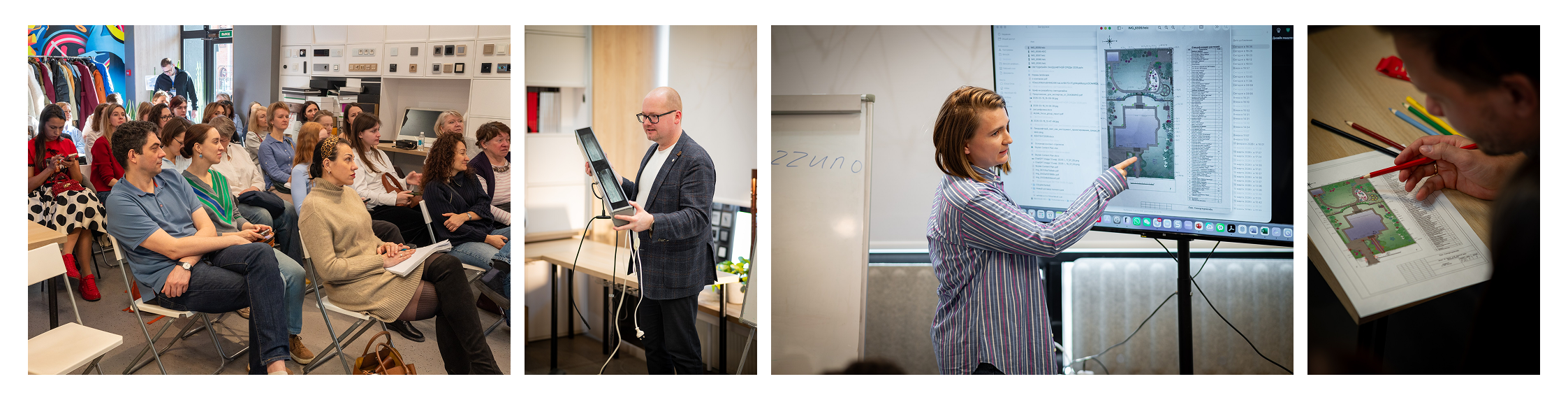 Профессиональный светодизайнер Александр Масленников рассказал о роли света в ландшафтных проектах, типах светильников, сценариях освещения и способах заработка для дизайнеров. Практическая часть позволила участникам работая в группах, создать уникальные проекты светодизайна на основе дендроплана.