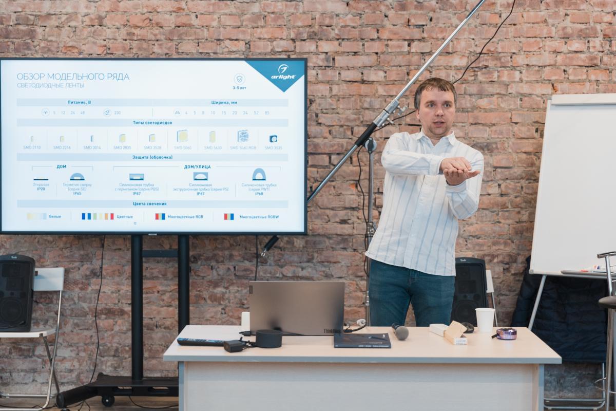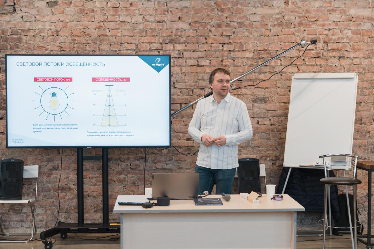 главным спикером стал Виктор Гогин — ведущий менеджер и инженер-светотехник компании “Arlight”.