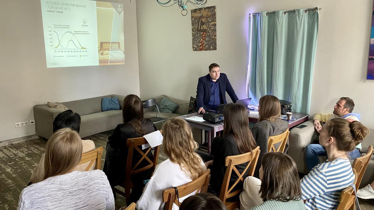 Региональный менеджер компании Arlight Сергей Филимонов выступил с самой актуальной темой «Биодинамическое освещение HCL (Human Centric Lighting)», рассказал где и как его применять, как подбирать светодиодные ленты и управлять освещением со смартфона.