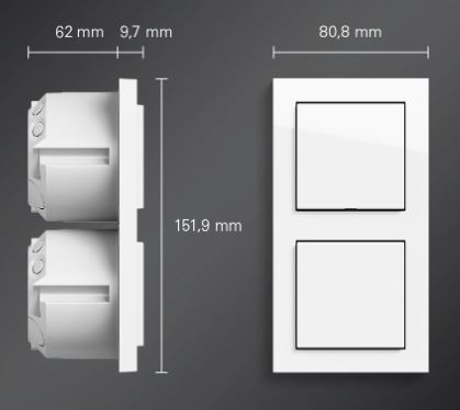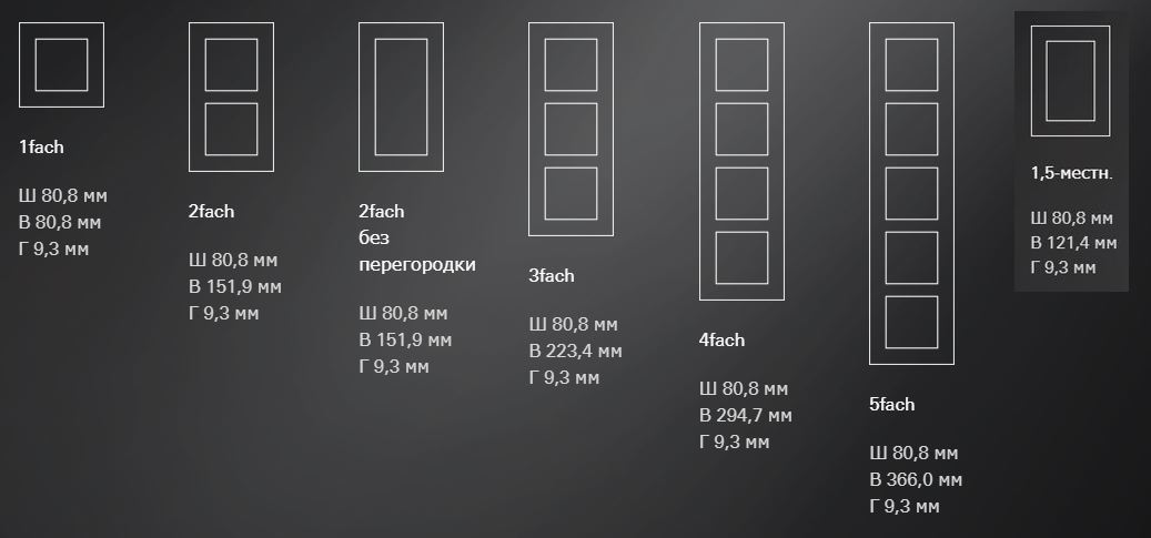 Стандартный монтаж: рамки от 1 до 5 постов + полуторная рамка без перегородки (только в термопласте) + двойная рамка без перегородки. Предназначены для вертикальной и горизонтальной установки.