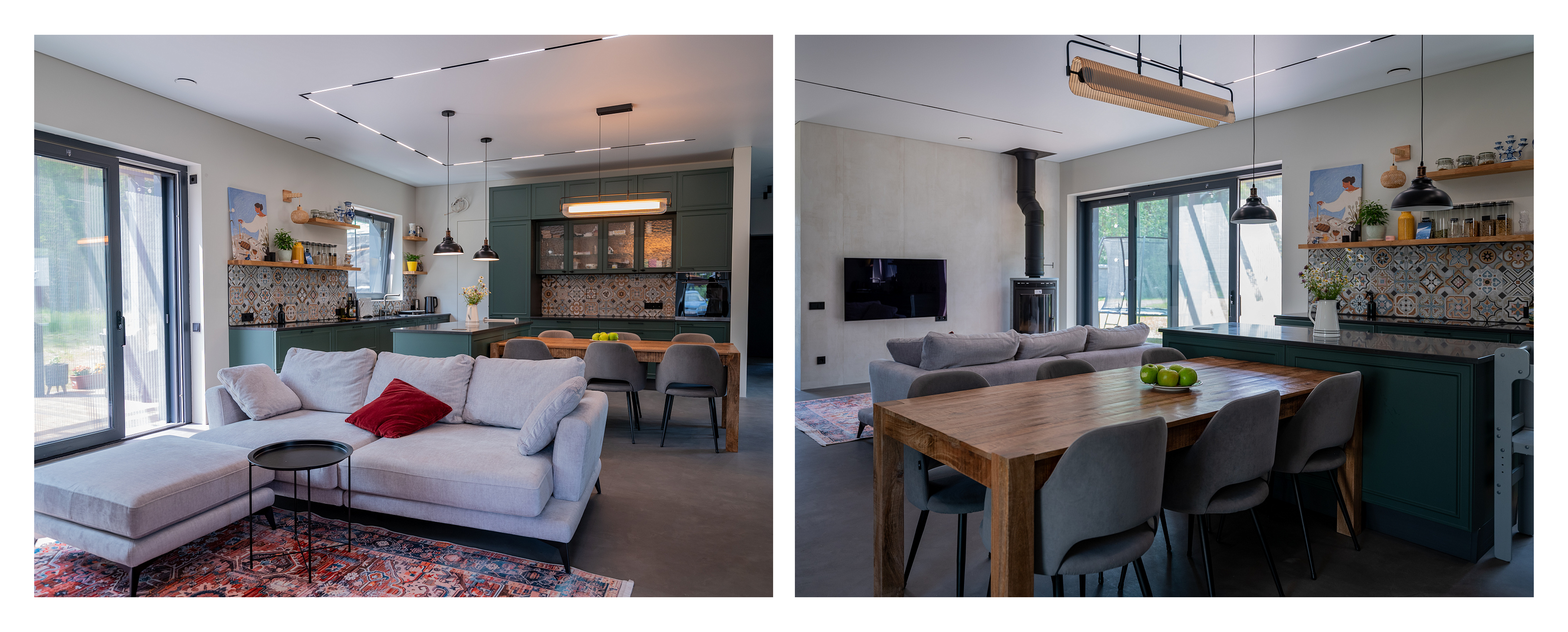 Определите стиль кухни (модерн, скандинавский, минимализм и т. д.) и подберите светильники в едином дизайне. Часто оптимален микс из линейных светильников над столешницей и декоративных подвесов над обеденной зоной.