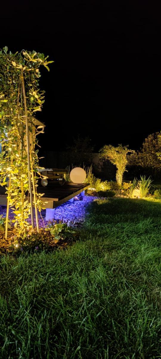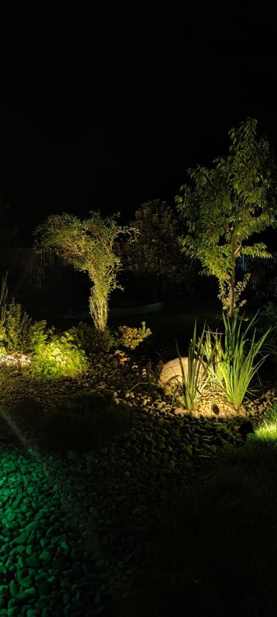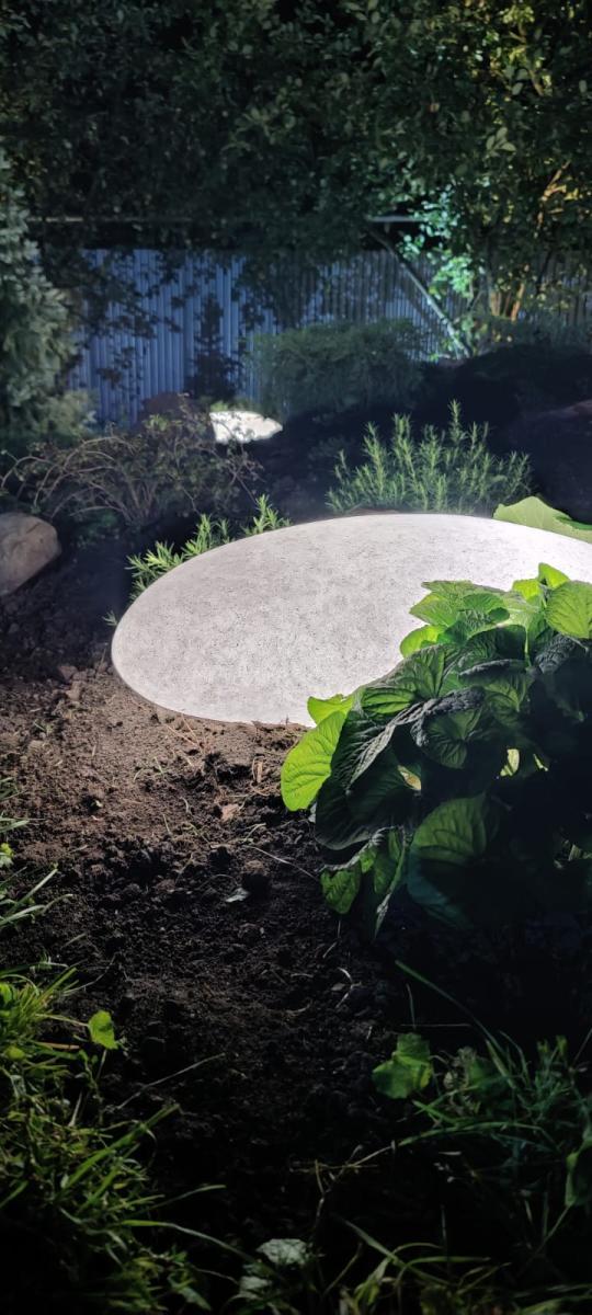 Проект участка реализован Ландшафтной компанией “Авторский сад”. Наша компания подобрала нужные светильники для него.