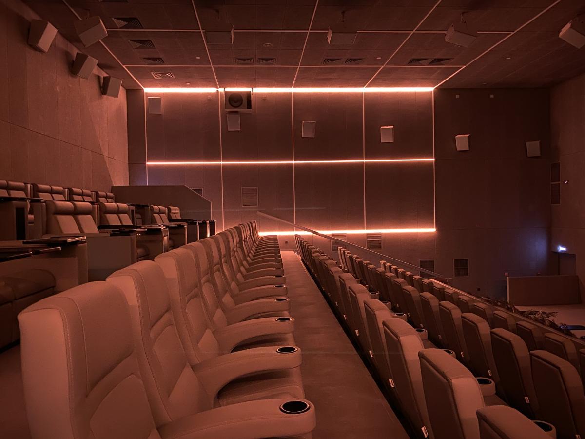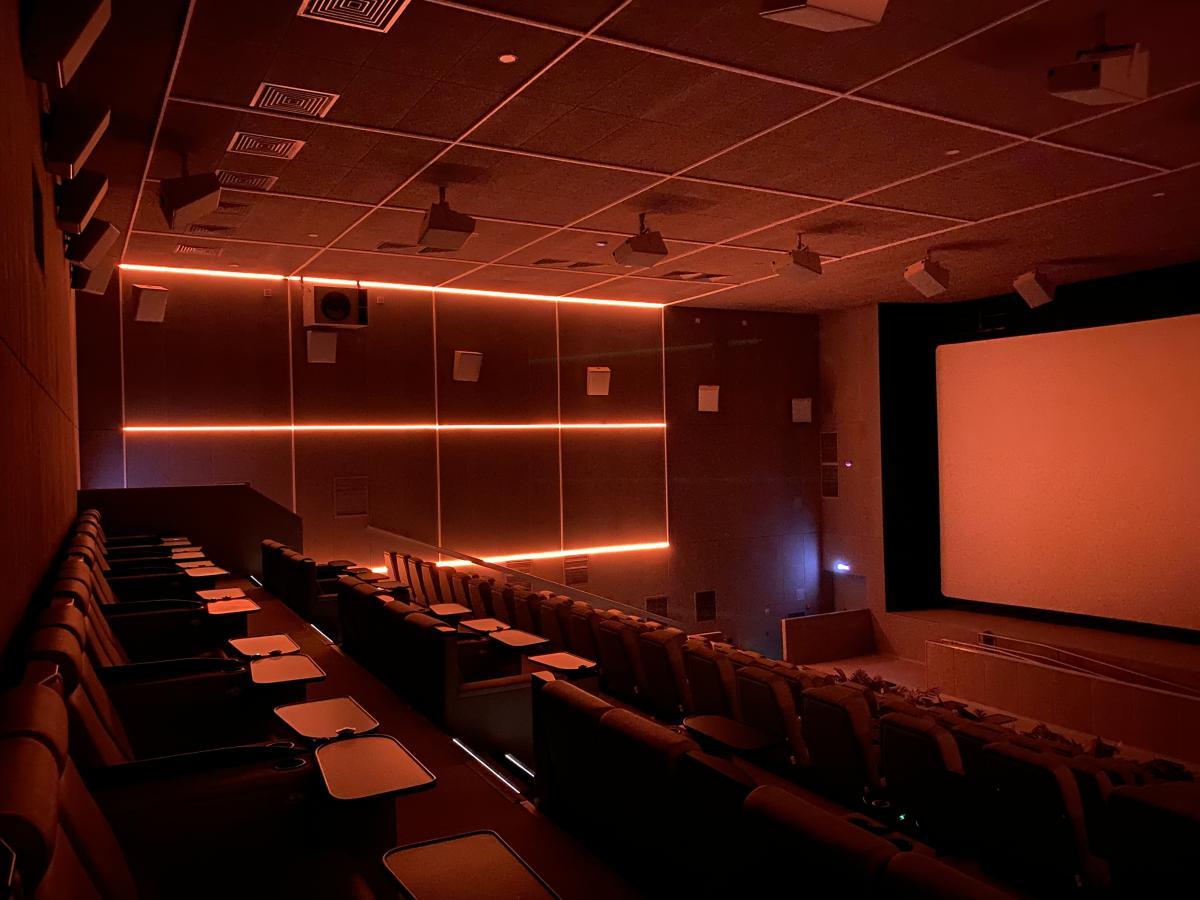 Кинотеатры всегда ассоциируются с полумраком, это значит, что освещение в таких локациях должно быть ненавязчивым, но в то же время атмосферным. Световые линии — идеальный способ, который решает обе эти задачи.