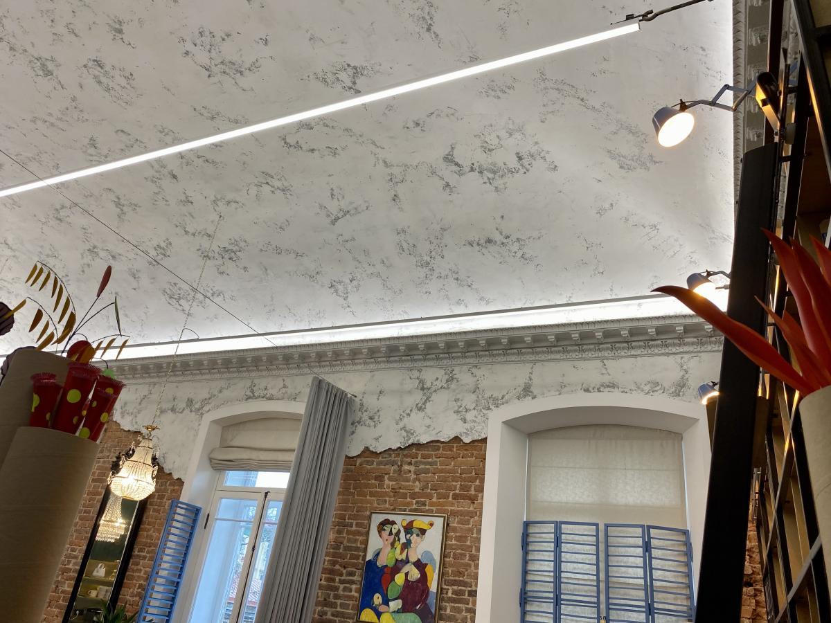 Это старинное здание, имеющее большую памятную ценность для города. Все потолки с лепниной, штробить и прокладывать дополнительные кабели нельзя. Стояла задача сделать освещение, не меняя существующие выводы. Покажем как мы справились с такой задачей и какие светильники использовали.