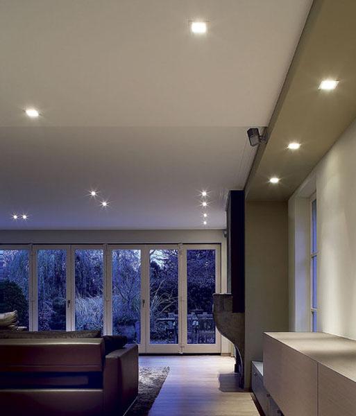 Встраиваемые светильники монтируются в подвесные и натяжные потолки, гипсокартонные и фанерные листы и другие конструкции. Корпус таких приборов будет полностью или частично скрыт.