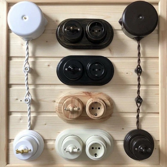 Выключатели выполнены в ретро стиле, для накладного и скрытого типа монтажа.
