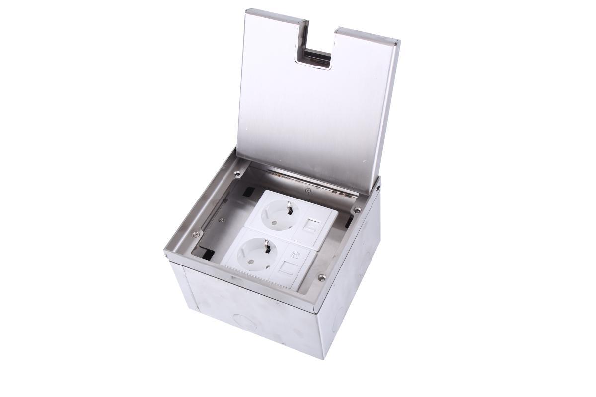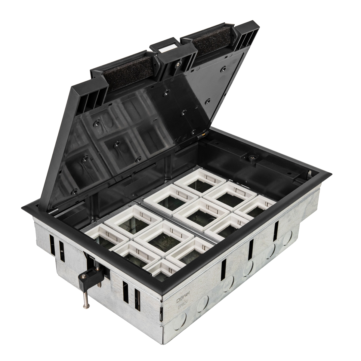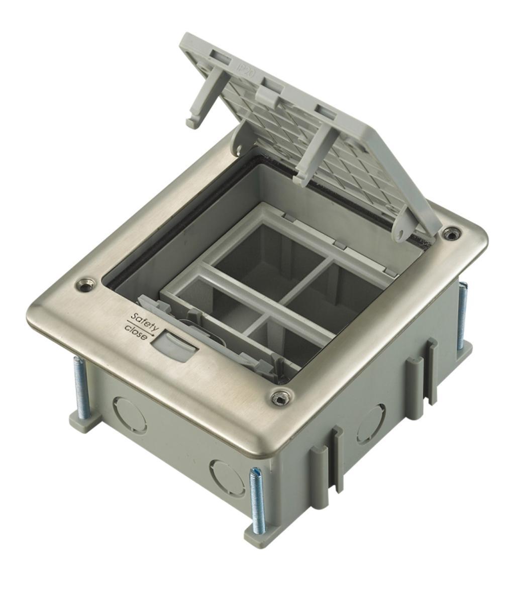 Напольные лючки Donel – универсальное решение для организации рабочих мест, предназначены для монтажа модульных электроустановочных изделий стандарта 45*45 в плиты фальш-пола или в бетонный пол. Оборудование используют для распределения силовых, а также слаботочных систем. Профессиональная система помогает оборудовать электросеть даже в максимальном удалении от стен. Подходит для использования в офисах, конференц-залах, звукозаписывающих студиях и на других объектах для организации рабочих мест.
