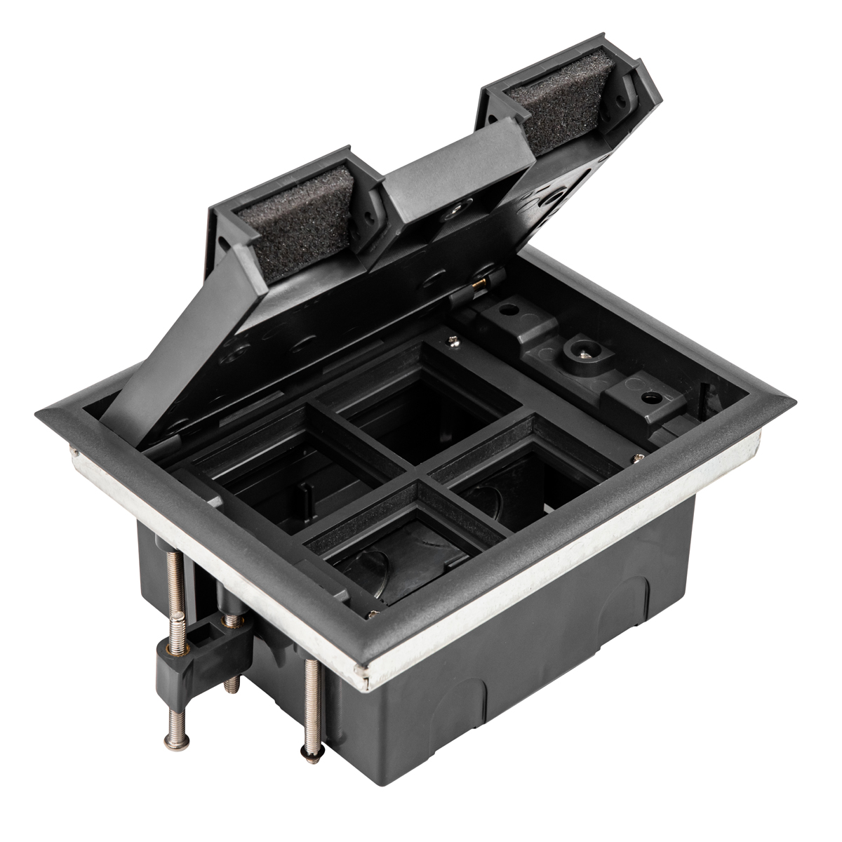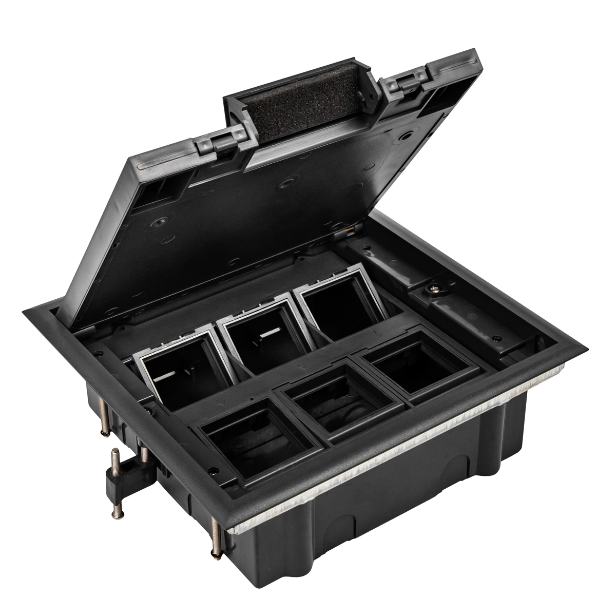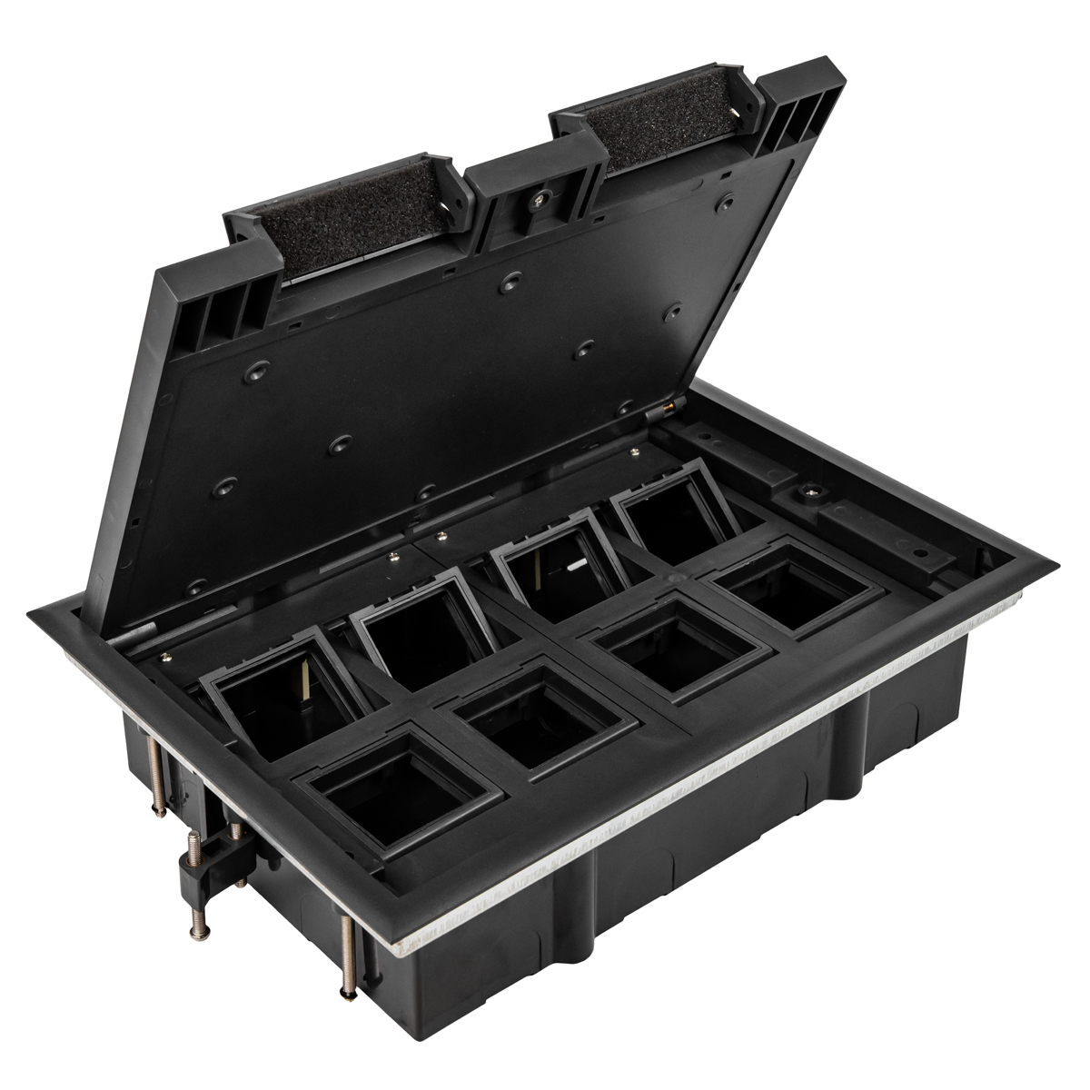 Напольные лючки Donel – универсальное решение для организации рабочих мест, предназначены для монтажа модульных электроустановочных изделий стандарта 45*45 в плиты фальш-пола или в бетонный пол. Оборудование используют для распределения силовых, а также слаботочных систем. Профессиональная система помогает оборудовать электросеть даже в максимальном удалении от стен. Подходит для использования в офисах, конференц-залах, звукозаписывающих студиях и на других объектах для организации рабочих мест.