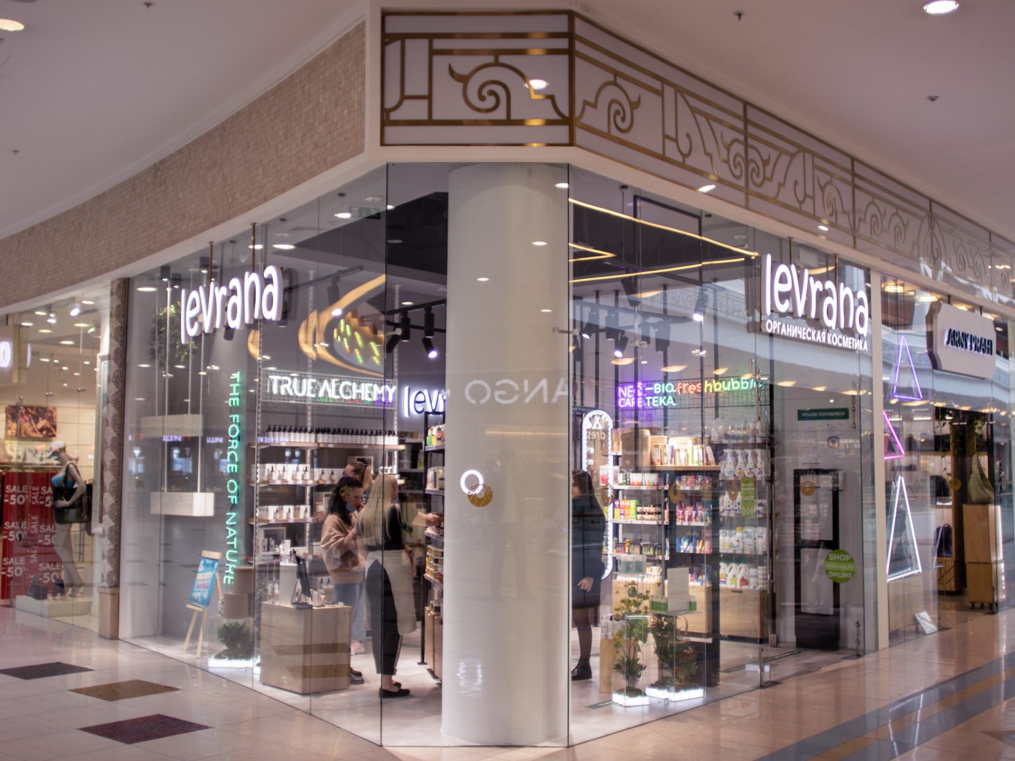 Наша компания занималась освещением сети салонов натуральной косметики “Levrana”.