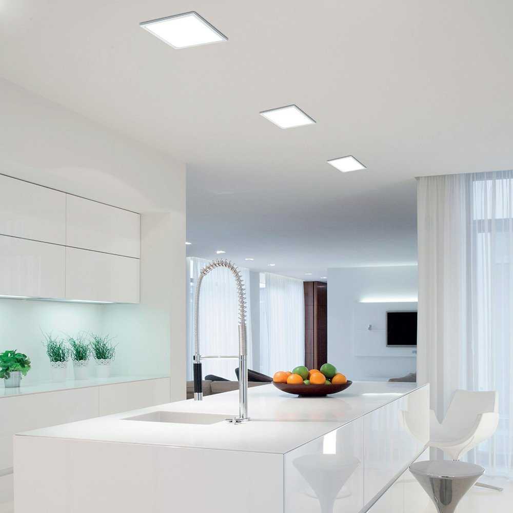 Встраиваемые светильники монтируются в подвесные и натяжные потолки, гипсокартонные и фанерные листы и другие конструкции. Корпус таких приборов будет полностью или частично скрыт.
