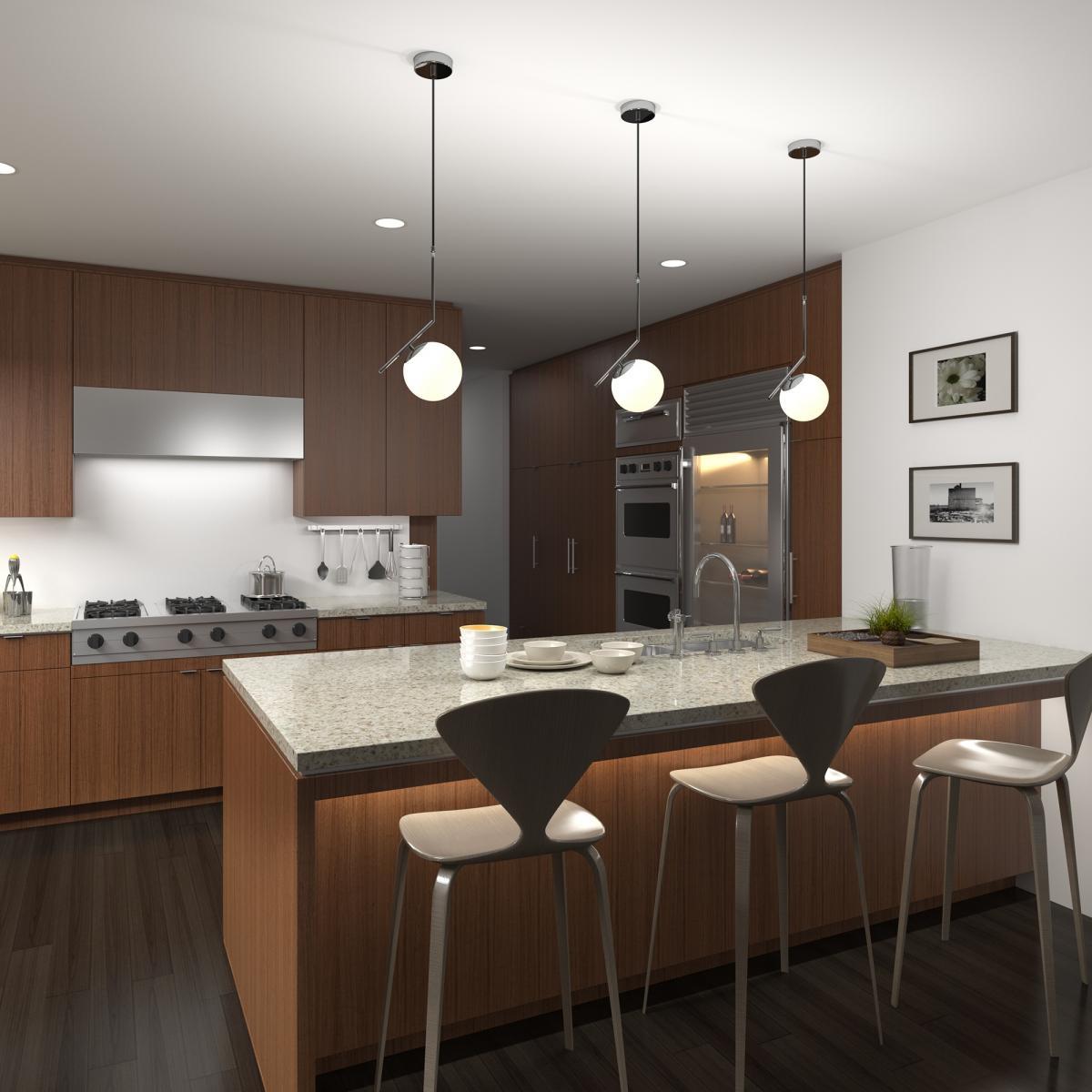 Подвесные светильники располагаются на расстоянии от потолка, а именно подвешены на проводе либо цепи. Это стильный элемент интерьера, который точно не останется без внимания.